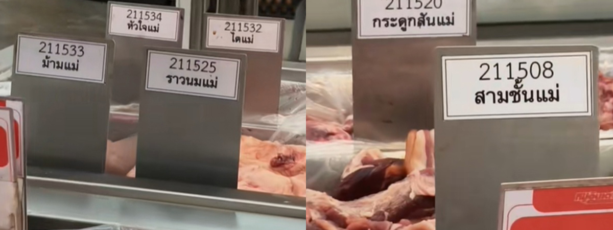 ผู้ใช้ TikTok @mopvn_52 ได้เผยภาพคุณแม่ท่านหนึ่ง อุ้มลูกไปซื้อของที่ห้างสรรพสินค้าแห่งหนึ่ง ระหว่างเลือกซื้อของ ดันไปเห็นชื่อสินค้าตรงโซนอาหารสด ไม่รู้ตั้งใจหรือเอาฮา ที่ตั้งชื่อแบบนี้ คนเป็นแม่เห็นถึงกับใจคอไม่ดี มีความฮาร์ดคอร์จนเกือบเชื่อไปแล้ว