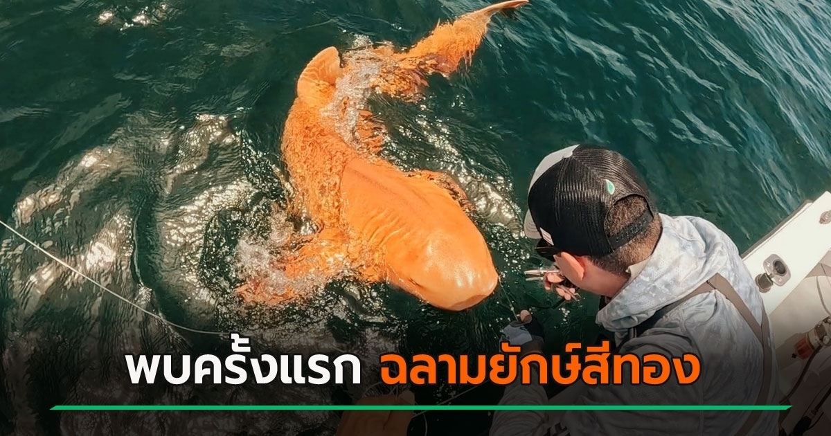 เผยภาพตื่นตาหาดูยาก ฉลามยักษ์สีส้มทอง-ตาสีขาว หลังถูกจับได้เป็นครั้งแรก ตัวยาว 2 เมตร เกิดจากความผิดปกติหายาก 2 ชนิดรวมกัน