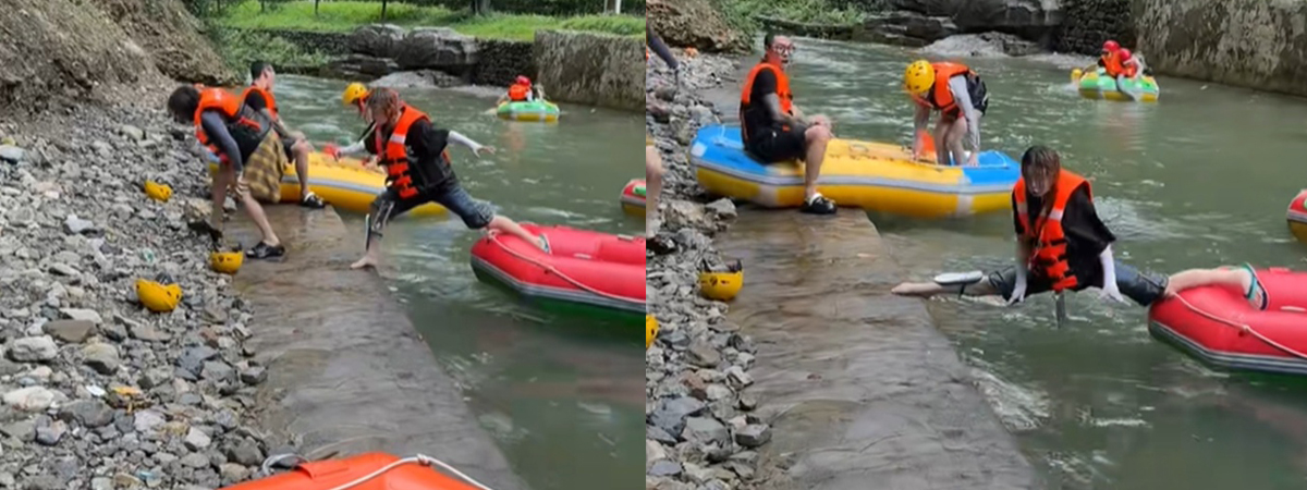 ผู้ใช้ TikTok @vitaminnchill.tv ได้เผยภาพนาทีนักท่องเที่ยว กำลังลงจากเรือชูชีพ หลังเสร็จภารกิจล่องแพ แต่กว่าจะลงได้ แทบปรับโฟกัสไม่ถูก ไม่รู้จะมองใครก่อน ต่างคนต่างผลัดกันแย่งซีน คนตกน้ำไม่เท่าไร มาพีคตรงคู่ที่ 3 นี่แหละ อยากรู้เหลือเกินว่าพี่ทำอะไรของพี่น่ะ