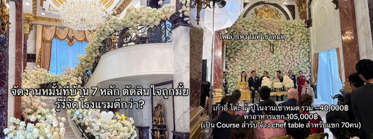 ผู้ใช้ TikTok @lingapy ได้เผยภาพสาวคนหนึ่ง รีวิวประสบการณ์จัดงานหมั้นให้พี่สาวที่บ้านหรูราคา 7 หลัก ส่วนสาเหตุก็เพราะบ้านสวย และไม่มีค่าสถานที่ เลยติดต่อจัดหาเองทุกอย่าง ฝึกเป็น Planner ภายในตัว ถึงแม้ว่าตัวงานออกมาสวยหรูไม่ต่างกับจัดที่โรงแรม แต่ค่าใช้จ่ายสูงกว่า เฉียดไปถึงหลักล้าน อีกทั้งเธอแนะนำว่าให้จัดที่โรงแรมดีกว่า