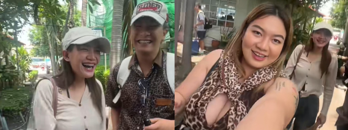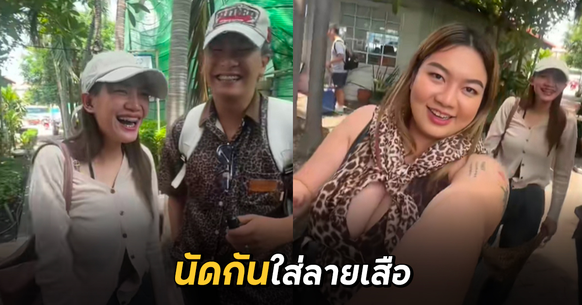 เจอเจ้าถิ่นของแท้ นัดกันใส่ชุดลายเสือกับเพื่อน บังเอิญเจอพ่อเสือเดินผ่านพอดี