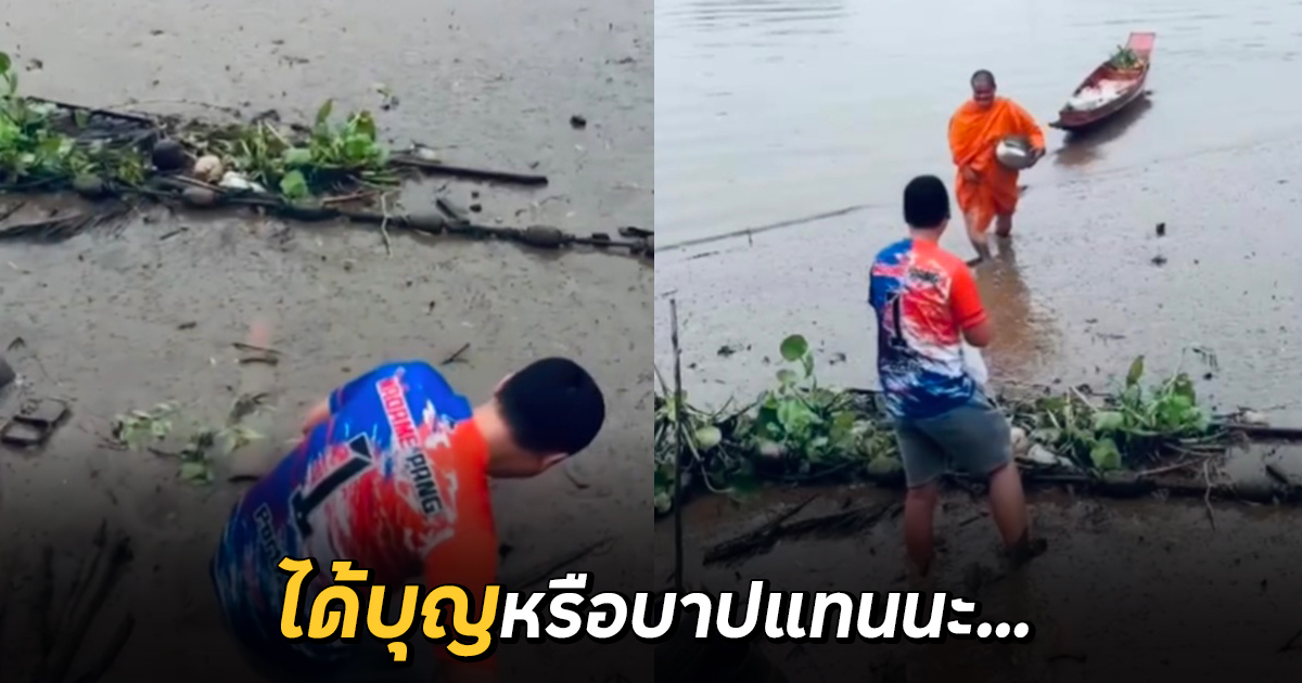 ได้บุญหรือบาปแทน อยากทำบุญใส่บาตร แต่หลวงพ่อลำบาก ต้องลงมาลุยน้ำ จะได้บุญไหมนะ