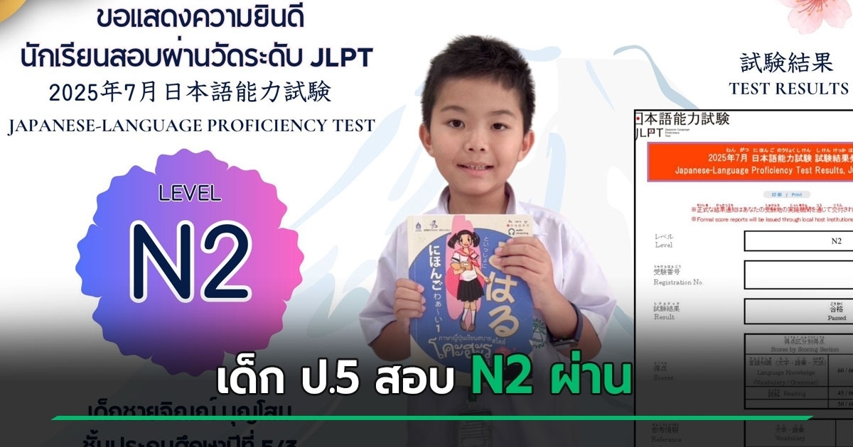 ฮือฮา เด็ก ป.5 สอบวัดระดับภาษาญี่ปุ่นระดับ N2 ผ่านแล้ว ทั้งที่พวกลุง ๆ ป้า ๆ กว่าจะผ่านได้แทบกระอัก พร้อมเผยเบื้องหลังความสำเร็จ