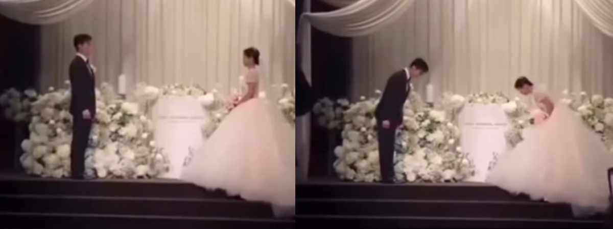 อินสตาแกรม @luxuryrichmind ได้เผยบรรยากาศงานแต่งจากญี่ปุ่น ถึงช่วงที่เจ้าบ่าวและเจ้าสาวโค้งคำนับ เพื่อแสดงความเคารพซึ่งกันและกัน หลังจากที่เริ่มก้ม เจ้าสาวก้มต่ำลงเรื่อย ๆ จนเจ้าบ่าวขอสู้กลับด้วยการลงไปโค้งคำนับแบบนอนคว่ำแทน สร้างสีสันจนแขกพากันขำทั้งงาน แถมยังเป็นไวรัลดังทั่วเอเชีย