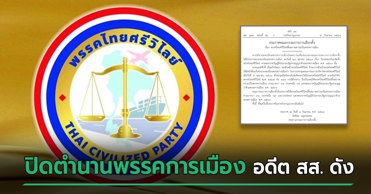 วันที่ 6 กันยายน 2568 ราชกิจจานุเบกษา มีการลงประกาศคณะกรรมการการเลือกตั้ง เรื่อง พรรคไทยศรีวิไลย์สิ้นสภาพความเป็นพรรคการเมือง มีรายละเอียด ดังนี้