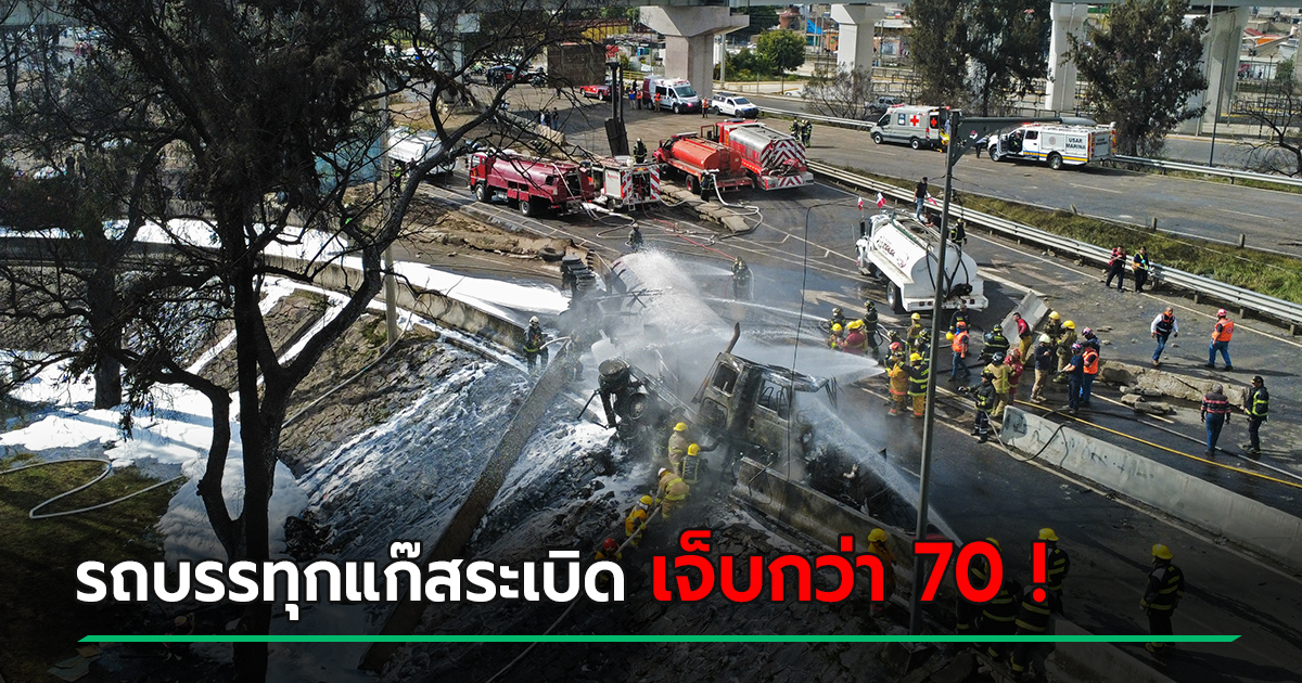รถบรรทุกแก๊ส 49,500 ลิตร พลิกคว่ำ ระเบิดกลางถนนเม็กซิโก ไฟเผาสยอง บาดเจ็บไม่ต่ำกว่า 70 ราย ดับแล้ว 3 ศพ ช็อกบางคนถูกคลอกทั่วร่าง
