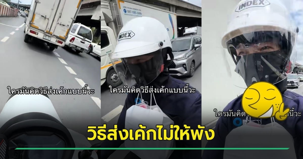 ไรเดอร์แชร์เทคนิคส่งเค้กยังไงไม่ให้พัง เพียงแค่มีหมวกกันน็อกก็ทำได้ แต่วิธีนี้ ผู้หญิงทำได้ยากหน่อย เพราะติดอะไรบางอย่าง