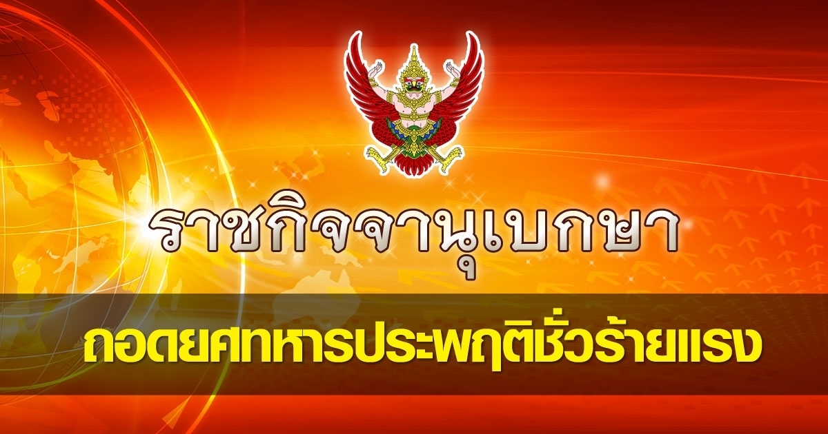 ราชกิจจานุเบกษา ประกาศถอดยศ 2 นายทหาร พ.ต.หญิง สุปรียา กับ พ.อ. ยุทธ์ศาสตร์ ฐานทำผิดวินัย ประพฤติชั่วอย่างร้ายแรง