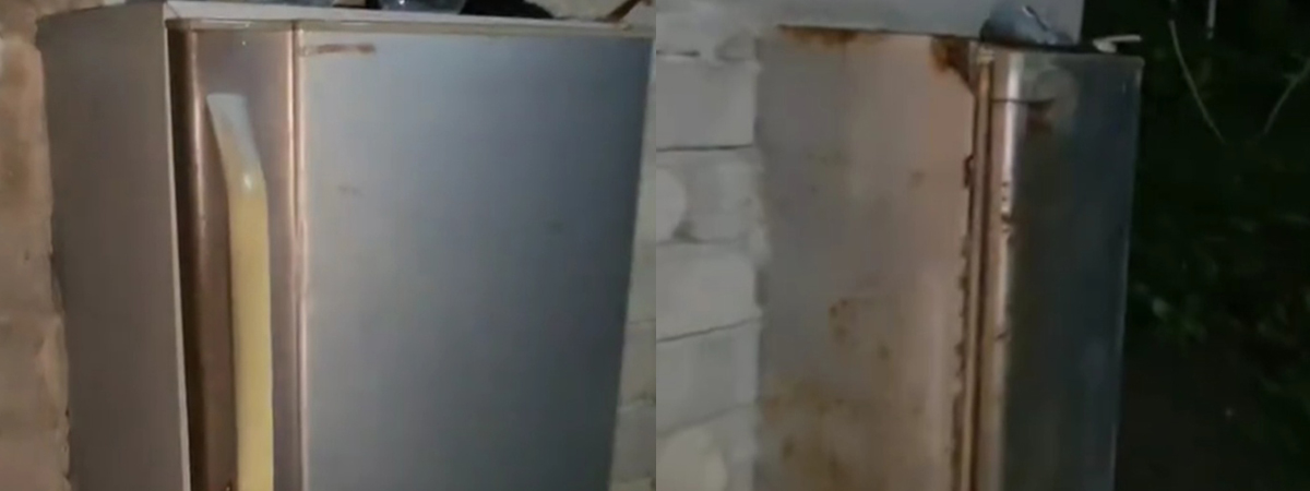 ข้างในอย่างว้าว มีคนเอาตู้เย็นเก่ามาวางไว้ เปิดดูข้างใน แทบไม่เชื่อในสิ่งที่เห็น