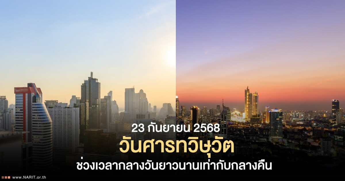 สถาบันวิจัยดาราศาสตร์แห่งชาติ (องค์การมหาชน) (สดร. หรือ NARIT) กระทรวงการอุดมศึกษา วิทยาศาสตร์ วิจัย และนวัตกรรม (อว.) เผย 23 กันยายน 2568 เป็น วันศารทวิษุวัต ช่วงเวลากลางวันและกลางคืนยาวนานเท่ากัน นับเป็นวันเริ่มต้นสู่ฤดูใบไม้ร่วงของประเทศทางซีกโลกเหนือ และเริ่มต้นสู่ฤดูใบไม้ผลิของประเทศในซีกโลกใต้