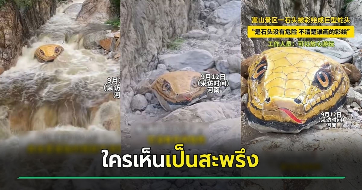 จากรายงานของเว็บไซต์ ETtoday วันที่ 22 กันยายน 2568 พบว่า หินก้อนยักษ์รูปร่างประหลาดนี้ตั้งอยู่กลางแม่น้ำในแหล่งท่องเที่ยวทางธรรมชาติ และกลายมาเป็นจุดดึงดูดสายตานักท่องเที่ยวที่มาเยี่ยมเยือน โดยจากภาพที่มีคนถ่ายไว้ได้ พบว่าลวดลายที่อยู่บนหินก้อนนี้ มีทั้งตาที่คมกริบ เกล็ดงู รวมถึงลักษณะอื่น ๆ ที่มีความสมจริง ดูราวกับหัวงูยักษ์ที่โผล่ออกมาพ้นน้ำ สร้างภาพอันตราตรึง ดึงดูดทุกสายตา