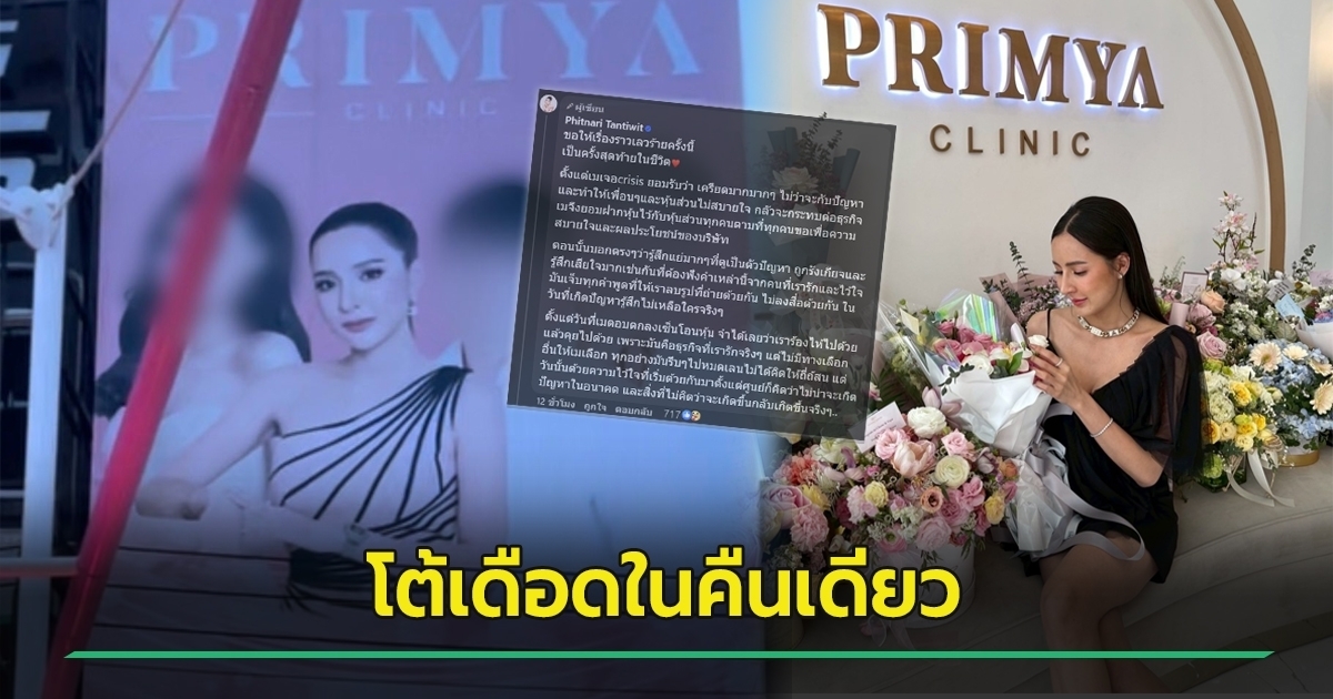 จึงขอออกแถลงการณ์เพื่อยืนยันปฏิเสธข้อมูลเท็จดังกล่าวทั้งสิ้น พร้อมขอชี้แจงความบริสุทธิ์ในครั้งนี้ เนื่องจากช่วงปี 2566 ขณะยังเป็นแบรนด์คลินิกเดิมนั้นบุคคลดังกล่าวซึ่งร่วมก่อตั้งนั้นเกิดปัญหาจากปัญหาส่วนของตัวบุคคลดังกล่าวเองจนเป็นข่าวเสียหายของบุคคลนั้น (ซึ่งสามารถ ตรวจสอบข่าวได้ตามที่ปรากฏทางโซเชียลมีเดียต่าง ๆ) จากเหตุดังกล่าวมีผู้คนต่าง ๆ เข้าใจผิดทำให้ยอดขายตกลูกค้าไม่มาใช้บริการเนื่องจากความเสื่อม เสียชื่อเสียงดังกล่าวของบุคคลดังกล่าว ซึ่งส่งผลชัดเจนในสาขาที่เกิดขึ้นทำให้ยอดตกต่ำรายได้หดหายเงินไม่พอกับค่าใช้ต่าง ๆ จนสุดท้ายต้องปิดกิจการ สาขาบางสาขา ต่อมาบุคคลดังกล่าวจึงเสนอขายหุ้นให้ทั้งหมดผู้ถือหุ้นที่เหลือพร้อมทั้งลาออกจากการเป็นกรรมการในขณะประชุมวิสามัญผู้ถือหุ้นนั้นซึ่ง ขณะนั้นบริษัทฯและกิจการไม่ได้มีผลประกอบการที่ดีนักตลอดจนเกิดสภาวะปัญหาต่าง ๆ ตามที่เรียนข้างต้น จึงยุติกิจการ พริมยา คลินิก แบรนด์คลินิก เดิม (ซึ่งสามารถตรวจสอบได้จากทางหน่วยงานราชการต่าง ๆ)