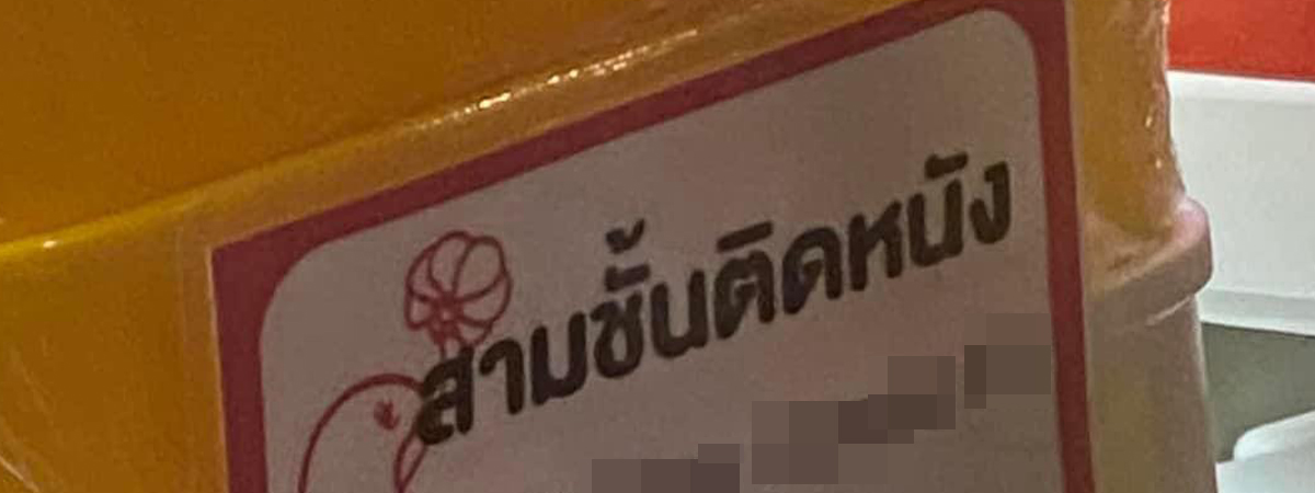 เฟซบุ๊ก ครูเต้ยเต้ย เทย สอนEng ได้เผยภาพตอนกินบุฟเฟต์ที่ร้านหนึ่ง เวลาสั่งเพิ่ม จะมีการเสิร์ฟผ่านสายพาน แล้วให้ลูกค้าหยิบได้อย่างสบาย แต่มีลูกค้าคนหนึ่งสั่งสามชั้นติดหนัง ระหว่างนั้นดันสังเกตเห็นชื่อภาษาอังกฤษพอดี ไม่คิดว่าจะใช้คำตรงตัวขนาดนี้ ทำลูกค้าท่านนี้ถึงกับไปไม่เป็นเลยทีเดียว
