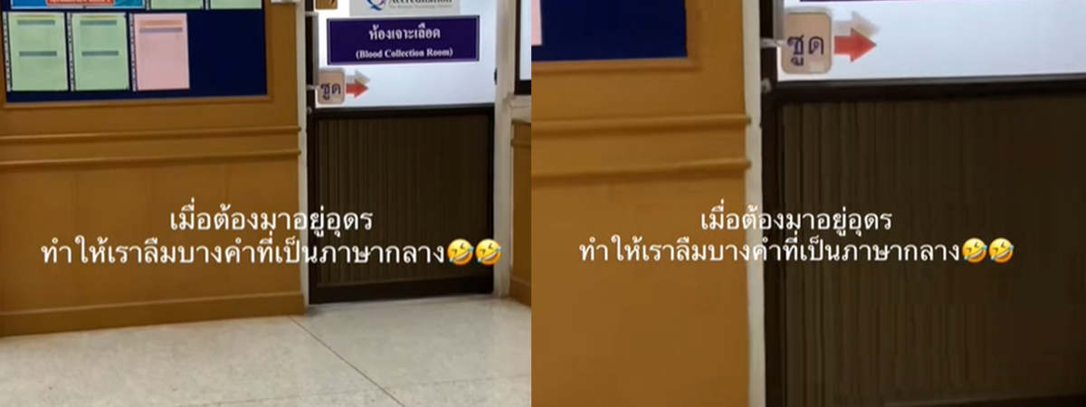 ผู้ใช้ TikTok @crochetlovever ได้เผยภาพตอนมาโรงพยาบาลที่อุดรธานี ระหว่างนั้นดันไปเห็นคำตรงป้ายประตูเลื่อน หน้าห้องเจาะเลือด ถ้าเป็นภาษากลางปกติ ใช้คำว่าเลื่อน แต่สำหรับโรงพยาบาลของอุดรธานี ใช้คำว่าซูดไปเลยทีเดียว แค่คำนี้คำเดียว ทำเอาลืมภาษากลางที่ใช้ไปแล้ว