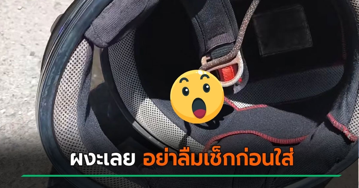 หนุ่มขี่มอเตอร์ไซค์มา 3 ชั่วโมง เพิ่งเอะใจมีบางอย่างอยู่ในหมวกกันน็อก ถอดดูถึงกับผงะ ถามจะเป็นอะไรไหม ก่อนโล่งใจเมื่อมีคนแห่เข้ามาเฉลย