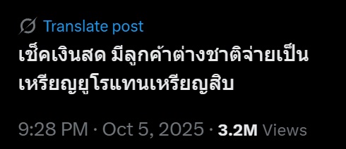 วันที่ 10 ตุลาคม 2568 ผู้ใช้ x @papunjaeat จากร้าน Versatile Cafe เอกมัย 19 มีการโพสต์เรื่องราวจนเป็นไวรัล หลังจากที่ลูกค้าต่างชาติใช้บริการที่ร้าน พร้อมกับจ่ายเงินเป็นเหรียญ 10 บาท จำนวน 4 เหรียญ เท่ากับ 40 บาท