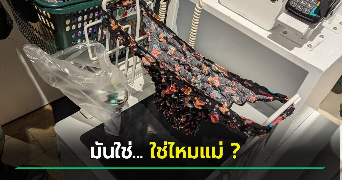 พร้อมกันนั้นยังแนบภาพ ของสิ่งหนึ่งที่แม่ของเขานำมากางตรงจุดชำระสินค้า โดยมีลักษณะเป็นผ้ายับย่น หู 2 ฝั่งกางออกกว้าง โดยมีส่วนตรงกลางรวมกันเป็นกระจุกเดียว เป็นลักษณะที่มองผ่าน ๆ ไม่ว่าใครก็คงอดคิดไม่ได้ว่า นี่มันกางเกงในชัด ๆ