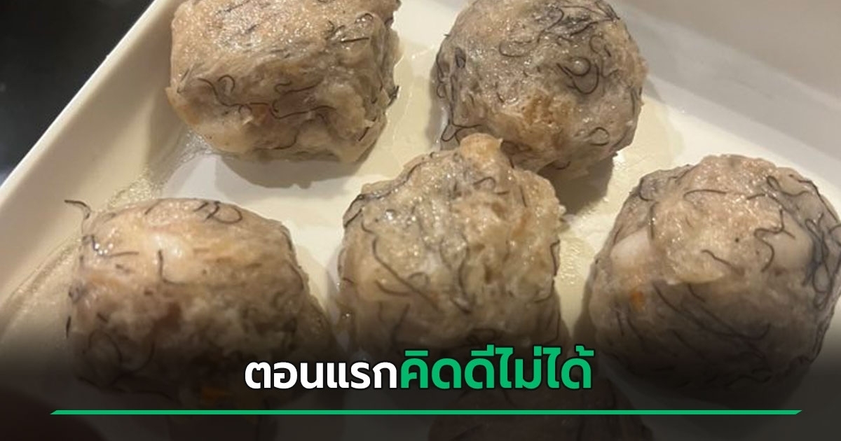 สั่งลูกชิ้นสุกี้ร้านดัง ของมาถึงตอนแรกคิดดีไม่ได้ ก่อนรู้ว่าเส้นดำ ๆ คืออะไร ตกใจหมด ส่วนชาวเน็ตแซวสนุกมือ