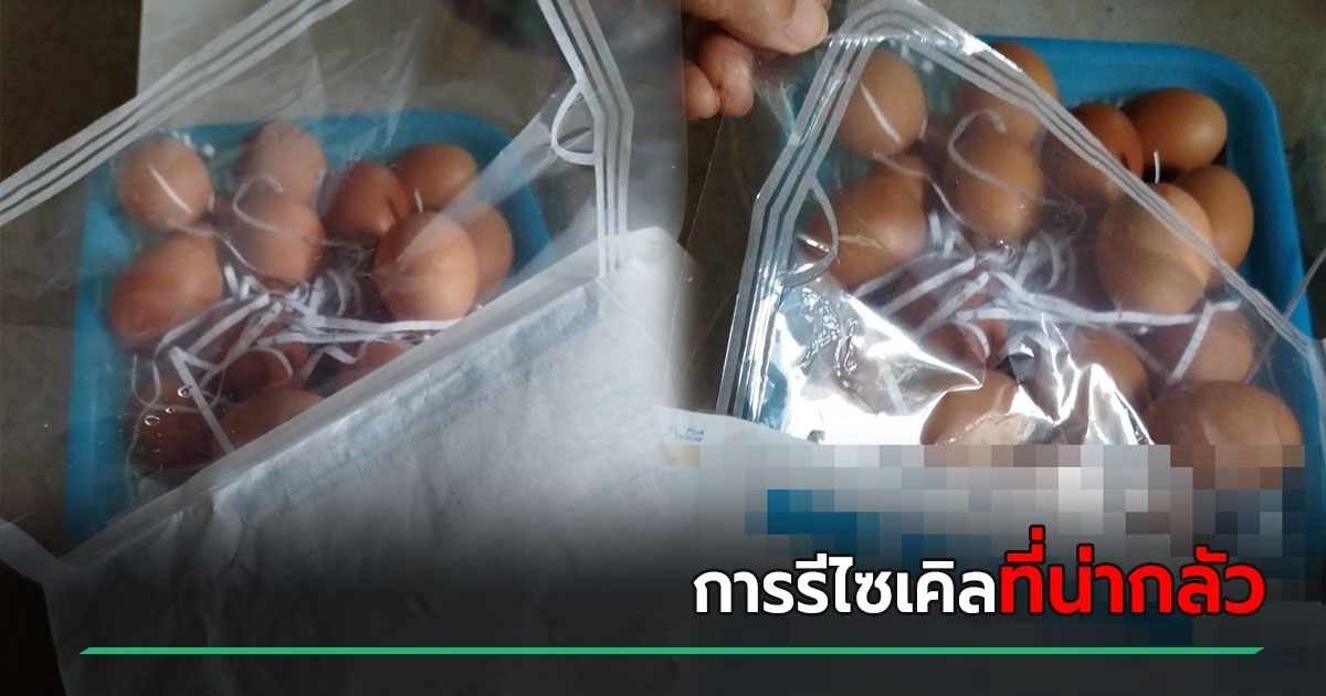 ซื้อไข่จากร้านประจำ ห่อกระดาษมาให้อย่างดี พออ่านดูเท่านั้นแหละ เป็นการรีไซเคิลที่น่ากลัวมาก แห่วิเคราะห์ ของมาอยู่ตรงนี้ได้อย่างไร