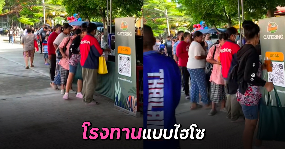 แจกแบบไฮโซ โรงทานแบบใหม่ แจกกาแฟอเมซอน คนทำบุญต่อแถวยาวเหยียด