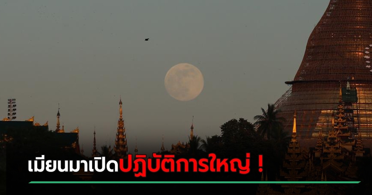 หมายเหตุ : แฟ้มภาพจากซินหัว เป็นภาพพระจันทร์เต็มดวงเคียงข้างเจดีย์ชเวดากองในเมืองย่างกุ้งของเมียนมา วันที่ 15 พฤศจิกายน 2567