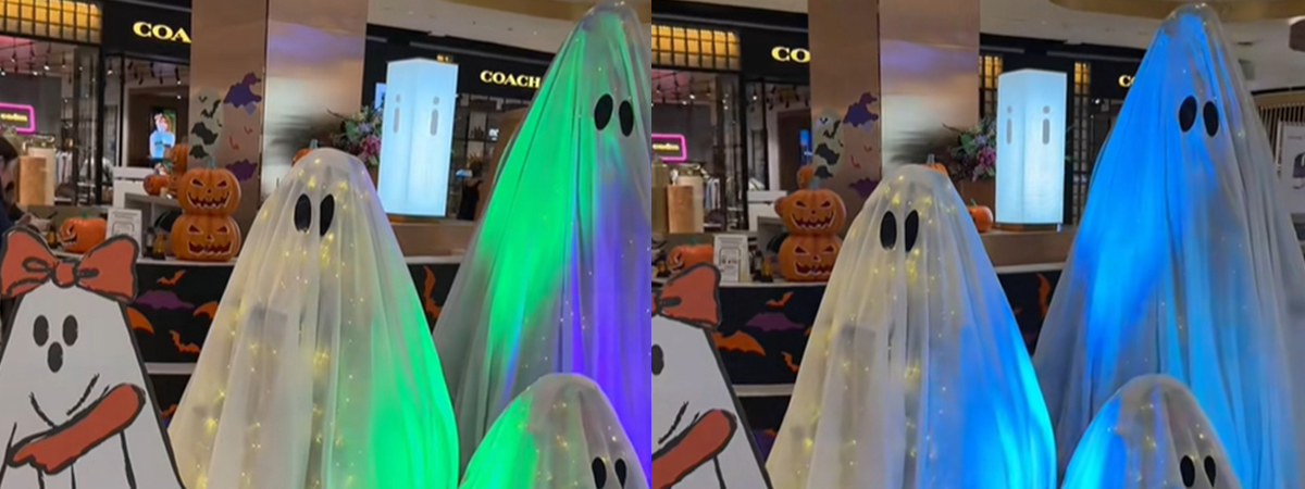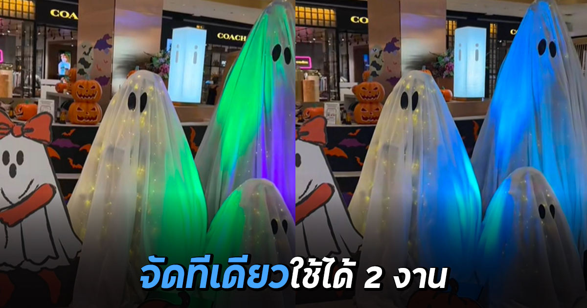 ผู้ใช้ TikTok @aranoreview ได้เผยภาพห้างดังแห่งหนึ่ง ตกแต่งบรรยากาศเพื่อเตรียมรับวันปล่อยผี หรือเทศกาลฮาโลวีน ที่กำลังจะมาถึงในอีกไม่กี่วันข้างหน้า แต่สิ่งหนึ่งที่ทำให้เอะใจมาก ๆ ทำไมข้างในผ้าคลุมผีมันดูคุ้น ๆ นะ สงสัยเตรียมรอวันคริสต์มาส พอหมดฮาโลวีน ดึงผ้าออกได้เลยทันที ใช้งานต้นคริสต์มาสได้อย่างคุ้มค่า