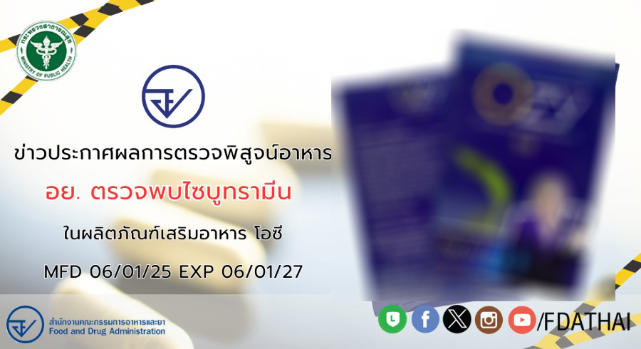 อย. เปิดผลตรวจอาหารเสริม สูตรดารา มีดาราดังเป็นพรีเซนเตอร์ พบสารต้องห้าม "ไซบูทรามีน" เสี่ยงต่อระบบหัวใจ-หลอดเลือด จ่อดำเนินคดี