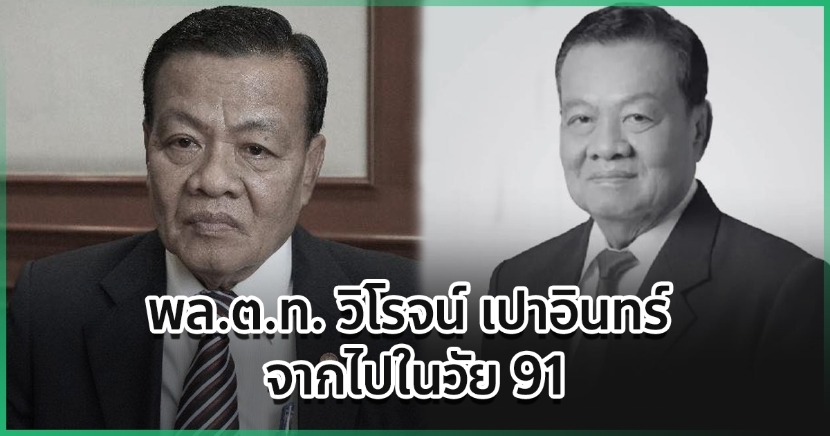 วงการการเมืองไทยสูญเสียบุคคลสำคัญอีกหนึ่งท่าน หลังจาก พล.ต.ท. วิโรจน์ เปาอินทร์ อดีตรองนายกรัฐมนตรี และอดีตหัวหน้าพรรคเพื่อไทย จากไปอย่างสงบในวัย 91 ปี