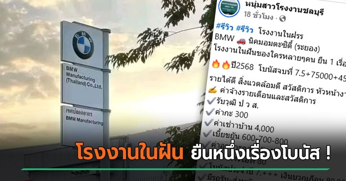 โรงงาน BMW ระยอง ใจป๋าแจก โบนัสปี 2568 รวมมูลค่าเกือบแสนบาท สร้างเสียงฮือฮาในโซเชียล แฟนคลับแห่คอมเมนต์โรงงานในฝันของจริง