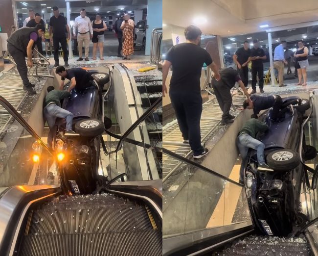บนโซเชียลมีเดียได้แชร์คลิปวิดีโอเหตุการณ์ระทึกที่แปลกตาและน่าตกใจ เมื่อมีรถยนต์คันหนึ่งพุ่งตกบันไดเลื่อนกลางห้างสรรพสินค้าที่มีผู้คนเข้าไปซื้อของ แต่เคราะห์ดีที่ไม่มีผู้เคราะห์ร้ายได้รับอันตราย ในขณะที่คนขับได้รับการช่วยชีวิตออกมาได้ ก่อนที่จะเปิดเผยถึงสาเหตุ