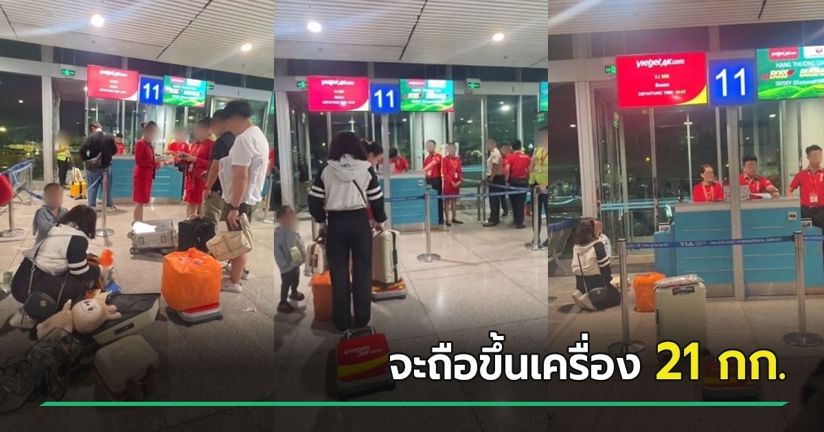 เหตุวุ่นในสนามบินเวียดนาม แม่พาลูกน้อยขึ้นเครื่องบิน ขอถือสัมภาระขึ้นเครื่อง 21 กก. ถูกปฏิเสธร้องลั่น - คุกเข่าไหว้พนักงาน