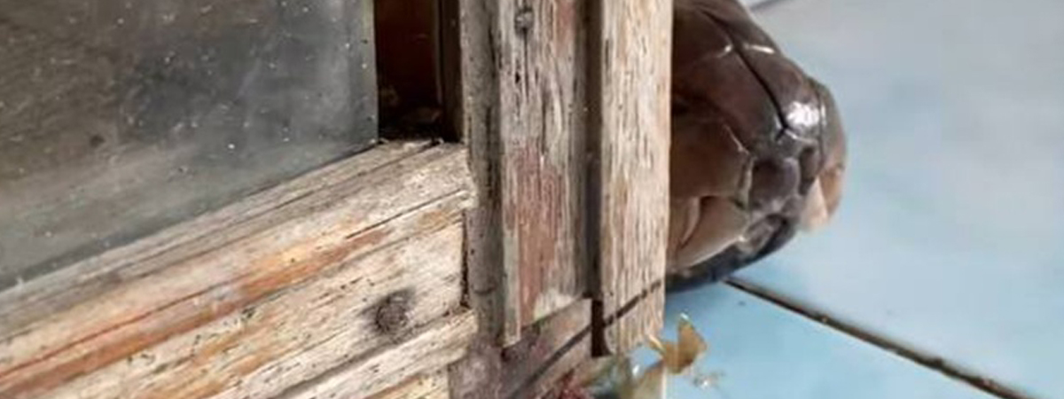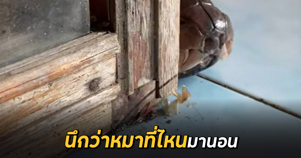 มาได้ยังไงเนี่ย !! แวบแรกนึกว่าเจ้าตูบที่ไหนมานอนข้างตู้ไม้ พอดูใกล้ ๆ ถึงกับช็อกแรง