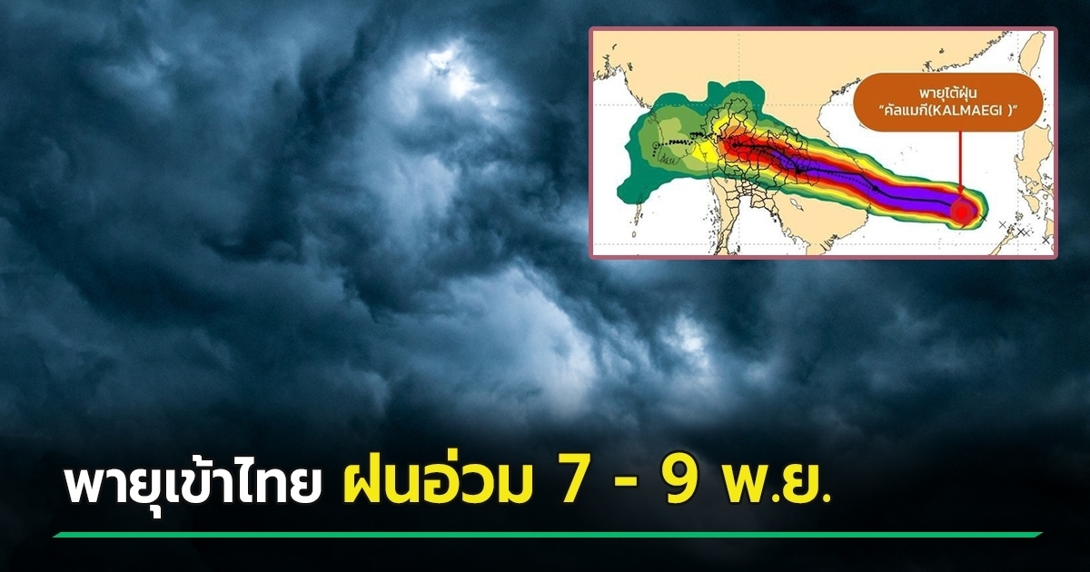 คัลแมกี จ่อเข้าไทย พรุ่งนี้ (7 พ.ย.) อ่อนกำลังลงเป็นดีเปรสชัน เตือนพื้นที่อีสานตอนล่างระวังฝนตกหนัก - น้ำท่วมฉับพลัน 7 - 9 พ.ย.