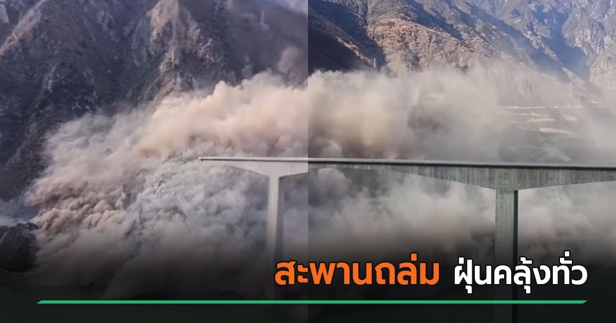 เชิงสะพานจีนพังถล่ม ฝุ่นคลุ้งทั่วพื้นที่ ไร้รายงานเจ็บ-ตาย ชี้เพิ่งปิดสะพานได้ 1 วันหลังพบรอยแตกร้าว ก่อนพังลงมาช่วงดินถล่ม