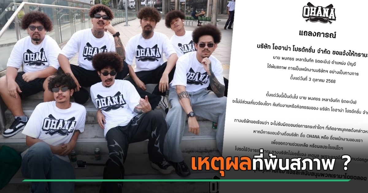 OHANA ประกาศพ้นสภาพ เดอะมีน ตั้งแต่วันที่ 3 ตุลาคม คนสงสัยเป็นเพราะอะไร บางคนบอก อ่านจากแถลงอาจจะเดาได้แล้ว แต่ความจริงต้องรอเจ้าตัวพูด