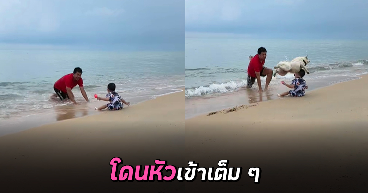ผู้ใช้ TikTok @nitiyachumapai ได้เผยภาพตอนที่คุณพ่อกำลังนั่งเล่นน้ำทะเล กับลูกชายอย่างมีความสุข แต่แล้วโมเมนต์อบอุ่นก็หายไปอย่างรวดเร็ว อยู่ ๆ ก็มีบางอย่างวิ่งมาอย่างเร็ว วิ่งกระโดดข้ามหัวลูกชาย และดูเหมือนว่าจะโดดไม่พ้น ทำให้โดนหัวลูกไปเต็ม ๆ ส่วนคนเป็นแม่ เลือดเย็นยิ่งกว่าพ่อ ขำลูกแบบสะใจไปอีก
