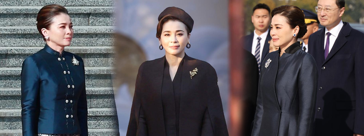 หนึ่งในสิ่งที่ได้รับความสนใจอย่างยิ่ง คือฉลองพระองค์ของสมเด็จพระนางเจ้าฯ พระบรมราชินี ซึ่งทรงเลือกสวมใส่ระหว่างการปฏิบัติพระราชกรณียกิจในจีน แต่ละชุดออกแบบอย่างประณีต สื่อถึงความอ่อนหวาน งามสง่า และความเคารพต่อวัฒนธรรมของประเทศเจ้าบ้าน ควบคู่กับการสะท้อนเอกลักษณ์ความงามแบบไทยได้อย่างลงตัว