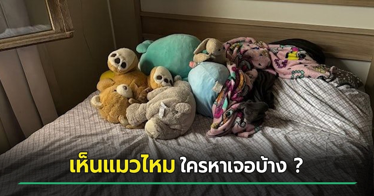 โดยเจ้าของได้โพสต์ภาพห้องนอนที่ด้านบนเตียงมีผ้าปูที่นอนสีขาว ด้านบนมีผ้าห่มและตุ๊กตาหลายตัวกองอยู่ แต่ไม่ว่ามองตรงไหนก็ไม่เห็นจะมีแมว หลายคนช่วยกันสังเกตอยู่นานแต่ก็หาไม่เจอเช่นเดียวกัน บางคนพยายามสังเกตตรงส่วนที่เป็นสีดำ เผื่อว่าแมวจะหลบอยู่ตรงนั้น แต่ก็ไม่พบ