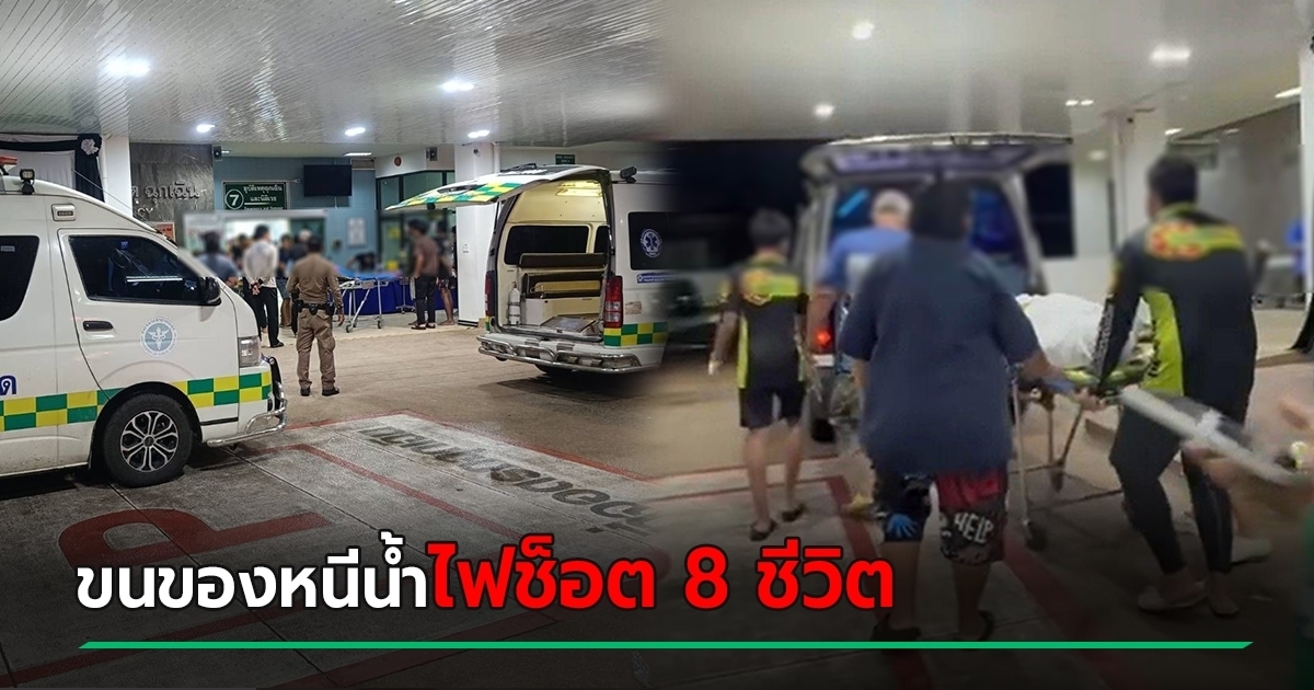 สลด 8 ชีวิตช่วยกันขนของหนีน้ำท่วม ถูกไฟช็อตพร้อมกัน ดับแล้ว 2 ราย บาดเจ็บ 6 ราย พบไฟรั่วขณะที่น้ำเข้าบ้าน