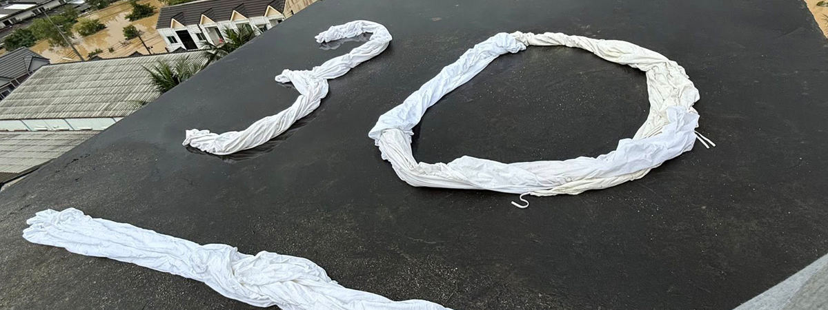 ไม่รู้จะทำอะไรได้มากกว่านี้แล้ว เปิดนาทีบีบหัวใจ ใช้ผ้าขาวพันเป็นตัวเลข ส่งสัญญาณขอความช่วยเหลือติดน้ำท่วม