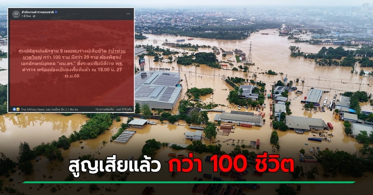 สำนักงานตำรวจแห่งชาติ รายงานพบผู้เสียชีวิตจากน้ำท่วมหาดใหญ่แล้วกว่า 100 ราย เร่งพิสูจน์เอกลักษณ์ จัดห้องเย็นเคลื่อนที่ เพื่อส่งคืนร่างสู่ครอบครัว