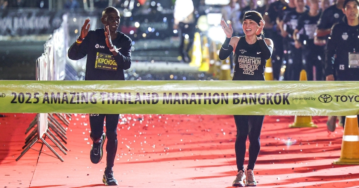 พระราชินี ทรงวิ่งฮาล์ฟมาราธอนเข้าเส้นชัยพร้อมเอเลียด คิปโชเก ตำนานนักวิ่งมาราธอน ในงาน Amazing Thailand Marathon Bangkok 2025 ที่สนามหลวง