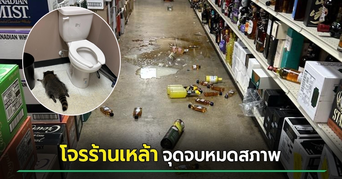แรคคูนบุกร้านเหล้า งัดขวดดื่มกระจาย เมาอาละวาด ก่อนสิ้นสภาพ นอนสลบในห้องน้ำ กลายเป็นภาพไวรัลสุดขำ น่าอายมาก