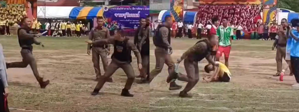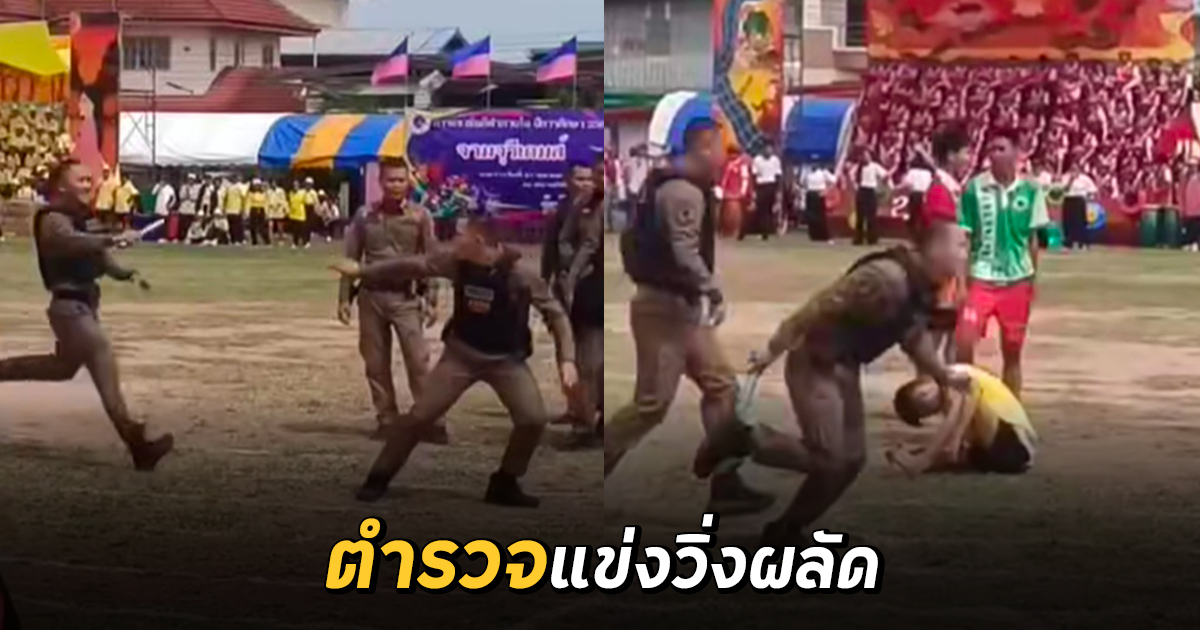 ถ้าขำจะโดนจับไหม ตำรวจลงแข่งวิ่งผลัดกับนักเรียน เพิ่งเปลี่ยนไม้แป๊บเดียว อายคนทั้งสนาม
