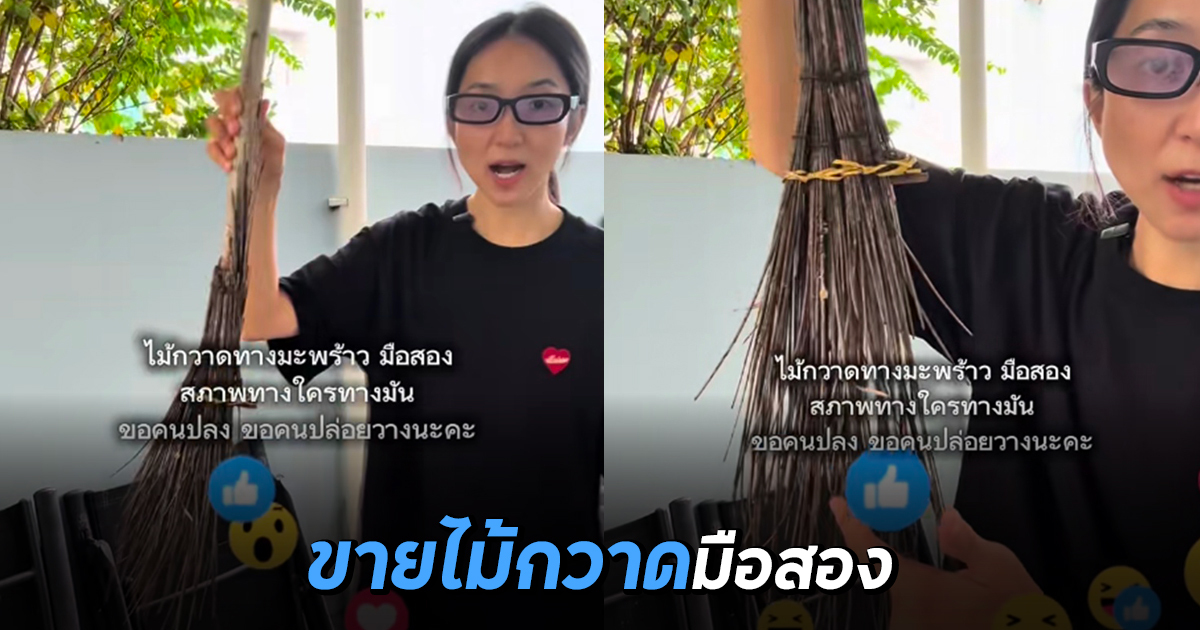 ผู้ใช้ TikTok @pang.plzsleep ได้เผยภาพแม่ค้าท่านหนึ่ง กำลังไลฟ์ขายของผ่านโซเชียลมีเดีย มาพีคเอาตรงตอนขายไม้กวาดทางมะพร้าวนี่แหละ สภาพมือสองก็จริง พอเห็นตัวไม้กวาดเท่านั้นแหละ ถ้าเอาไปกวาดจะสะอาดกี่โมง ขายแบบขำ ๆ จนชาวเน็ตพากันแซว เอามาเน้นกวาดทำทรง ไม่เน้นกวาดสะอาด