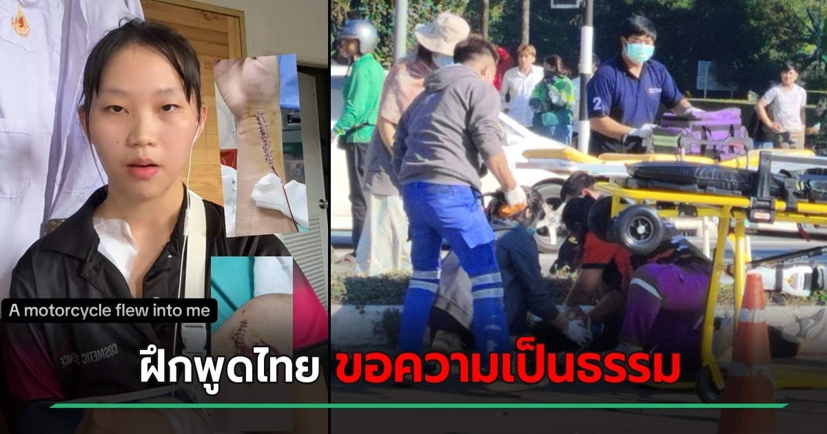 นศ. ต่างชาติ มหาวิทยาลัยแม่ฟ้าหลวง อัดคลิปพูดไทยร้องทุกข์ ถูกกระบะฝ่าไฟแดงชนจนกระดูกหัก 2 จุด คู่กรณีหายตัวไม่รับผิดชอบ ต้องจ่ายค่ารักษาเอง