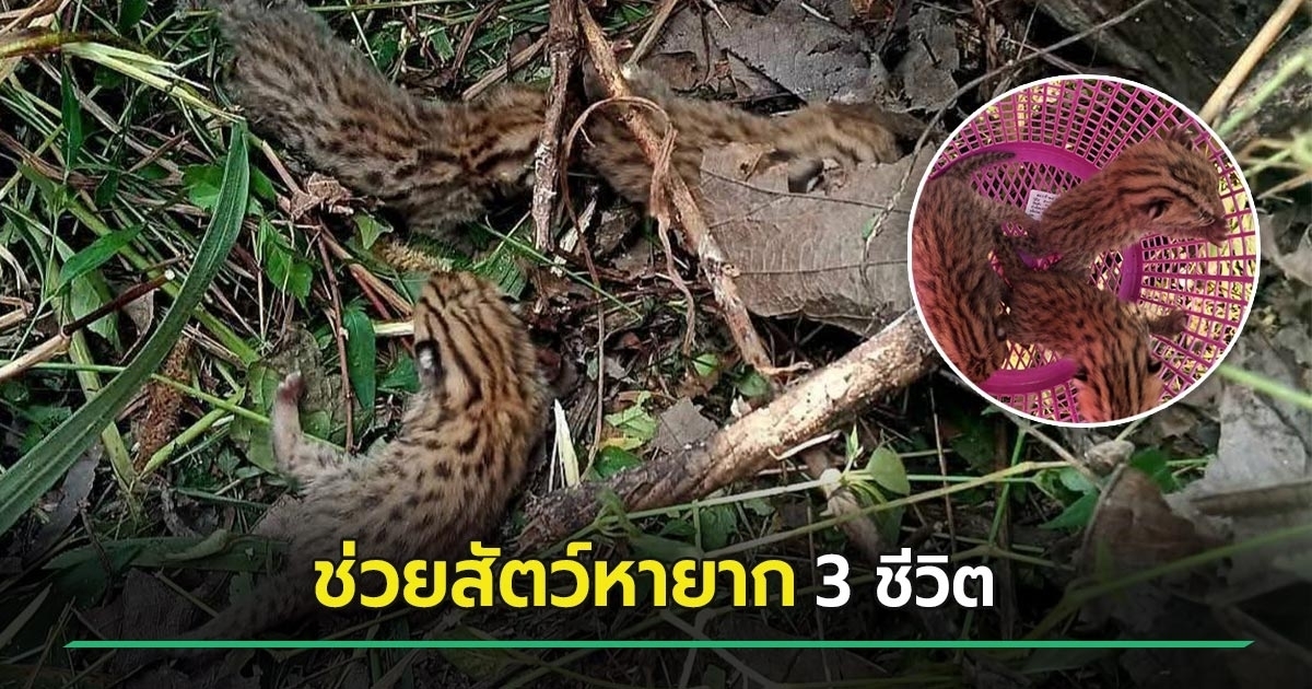 ชาวบ้านเข้าสวนเตรียมปลูกมันสำปะหลัง ได้ยินเสียงร้องปริศนาจากกอหญ้า ก่อนพบลูกเสือปลาสัตว์ป่าคุ้มครองหายาก 3 พี่น้อง สภาพไร้แม่คอยดูแล ด้านเจ้าหน้าที่เข้าช่วยเหลือแล้ว