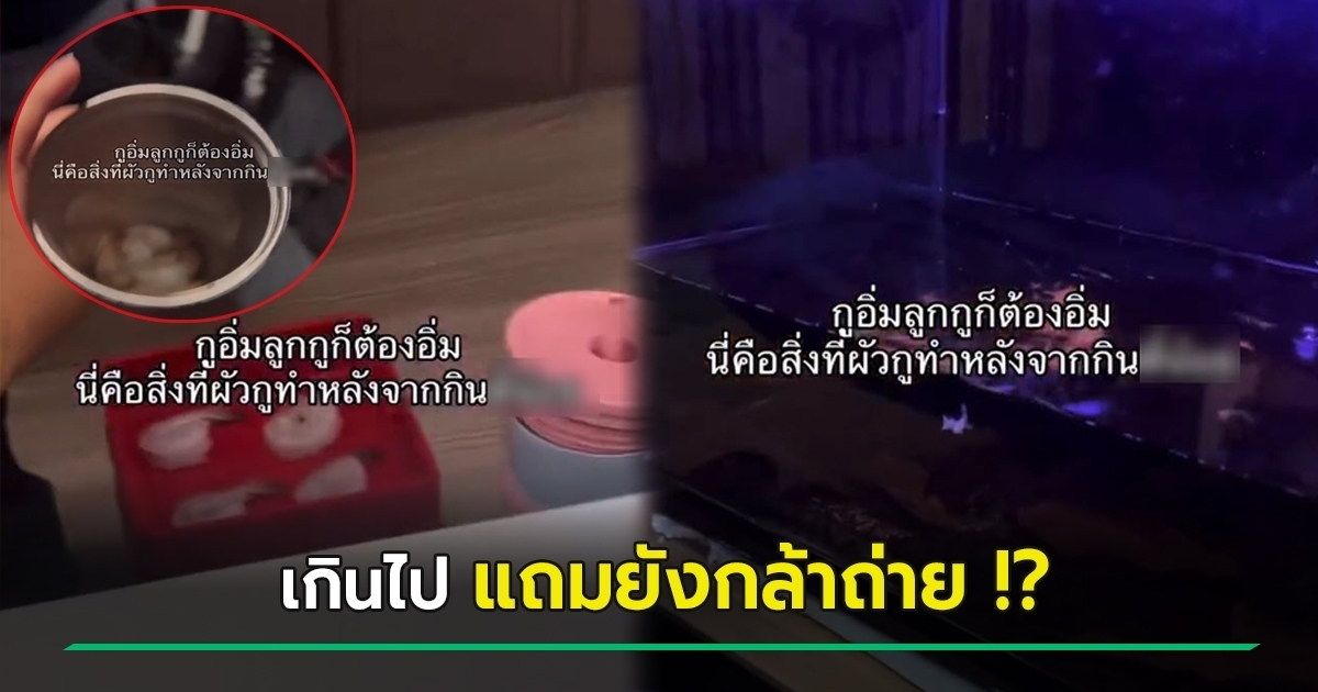 จากคลิปดังกล่าว ระบุข้อความไว้ว่า "กูอิ่ม ลูกกูต้องอิ่ม นี่คือสิ่งที่ผัวกูทำหลังจากกินร้านสุกี้บุฟเฟต์" ซึ่งพบว่าฝ่ายชายนั้นสั่งกุ้งมาหลายถาด แต่กลับเอาถาดวางไว้ข้างที่นั่งด้านในโต๊ะ ใกล้ ๆ กับแก้วน้ำส่วนตัว