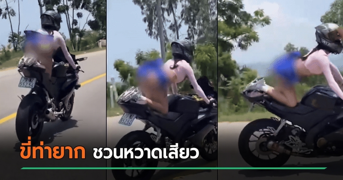 สวดยับ หญิงขี่บิ๊กไบค์โชว์ท่ายาก กระดกบั้นท้ายไม่สนเห็นทะลุถึงไหน โซเชียลเวียดนามเดือดจัด ล่าสุดตำรวจเรียกตัวแล้ว พบเป็นหญิงต่างชาติ
