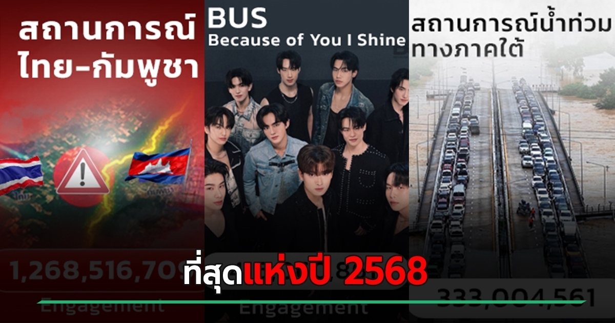 - อันดับที่ 1 สถานการณ์ไทย-กัมพูชา (1,268,516,709 เอ็นเกจเมนต์)